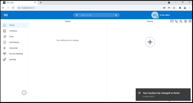 The MiCollab client UI will display the Emergency Location availability indicator at the bottom left of the client if the Emergency Location is not set. When you hover the mouse over the indicator, a tooltip is displayed, stating, please set your location. If you click on this indicator, it will directly take you to the page where you can set your location. This indicator will disappear once the user adds the location.
