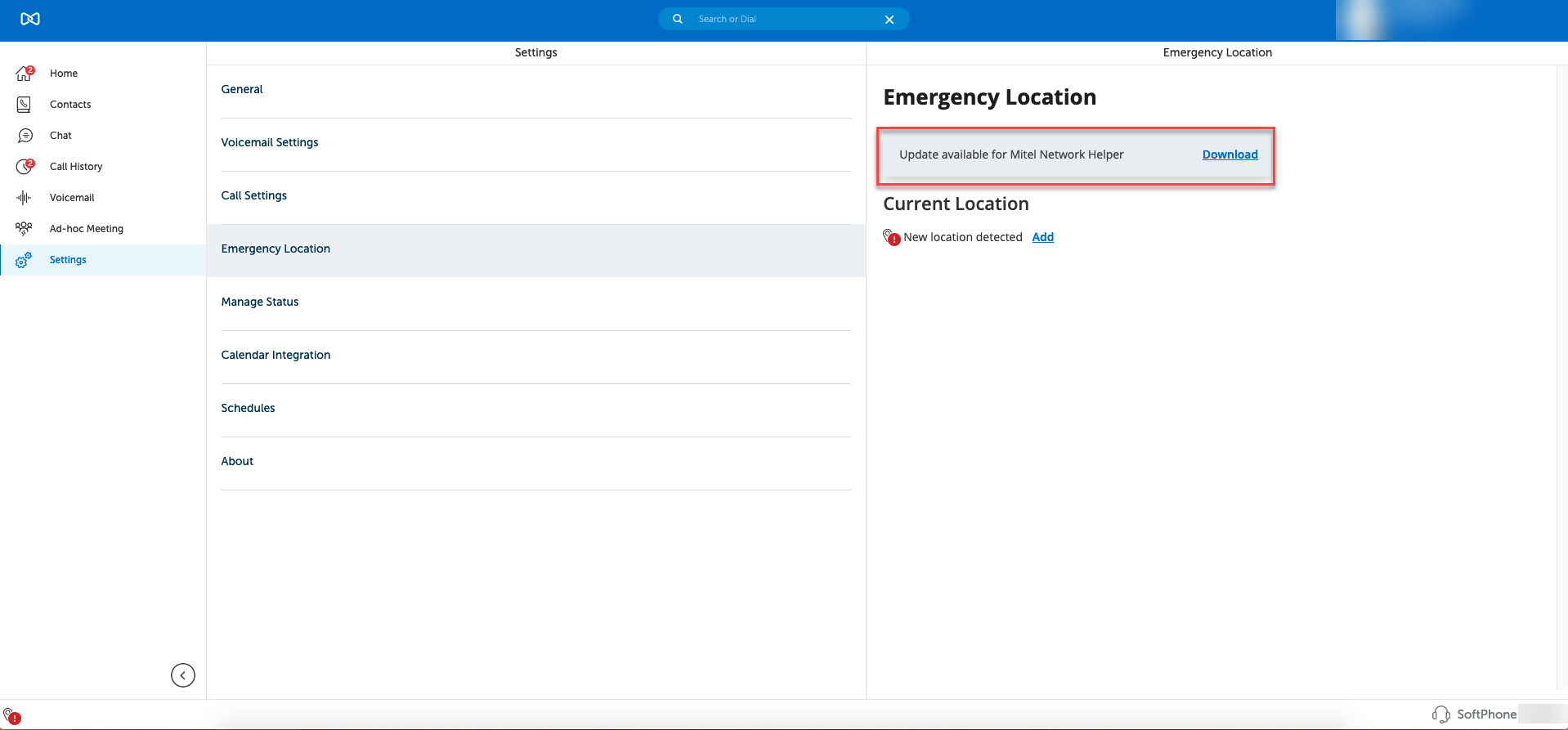 When the Mitel Network Helper gets upgraded to the next version, under the Emergency Location window, you can see the option to update the Network Helper version. Click on Download to upgrade the Mitel Network Helper version installed in your system.