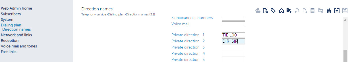Log-in to the MVoice 5000, navigate to Dialing Plan > Direction names and configure the Associated direction.