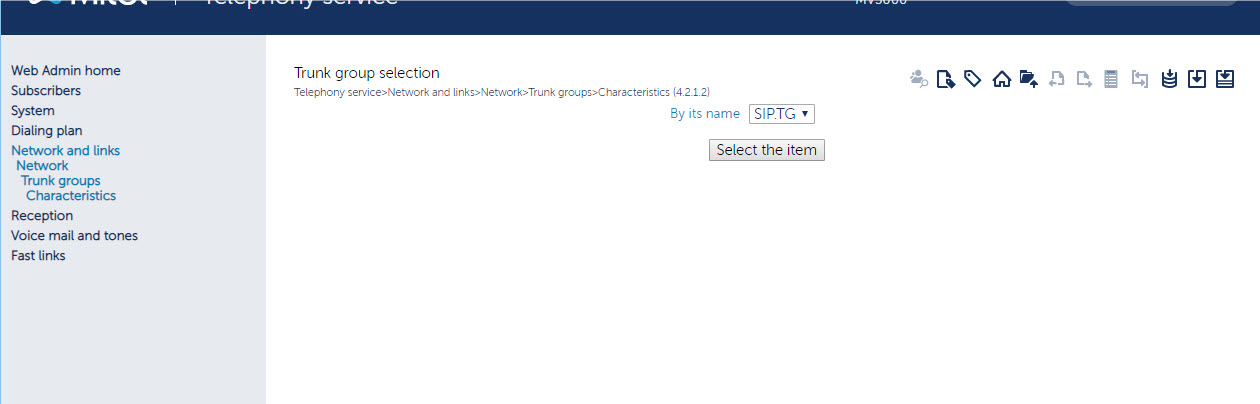 - Navigate to the Trunk Group. In the Trunk group selection page, click on the Select the item button.