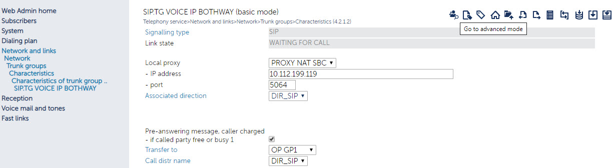 - Enter the values as displayed in the screenshots below (for example, IP address: MBG’s IP) and then click the Advanced mode icon (on top of the page) to view and configure the settings.