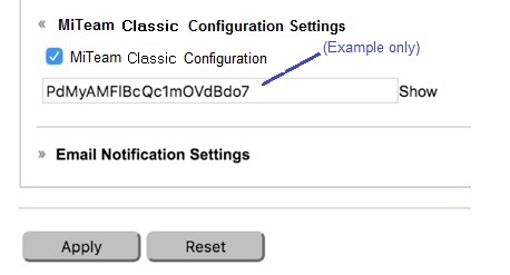 Under MiTeam Classic Configuration, click Show to display the OrganizationID.
