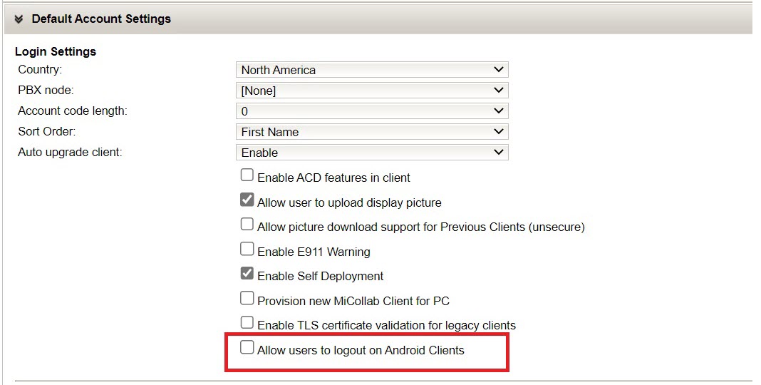 - Allow picture download support for Previous Clients (unsecure): Allows users to download picture for previous MiCollab Clients.