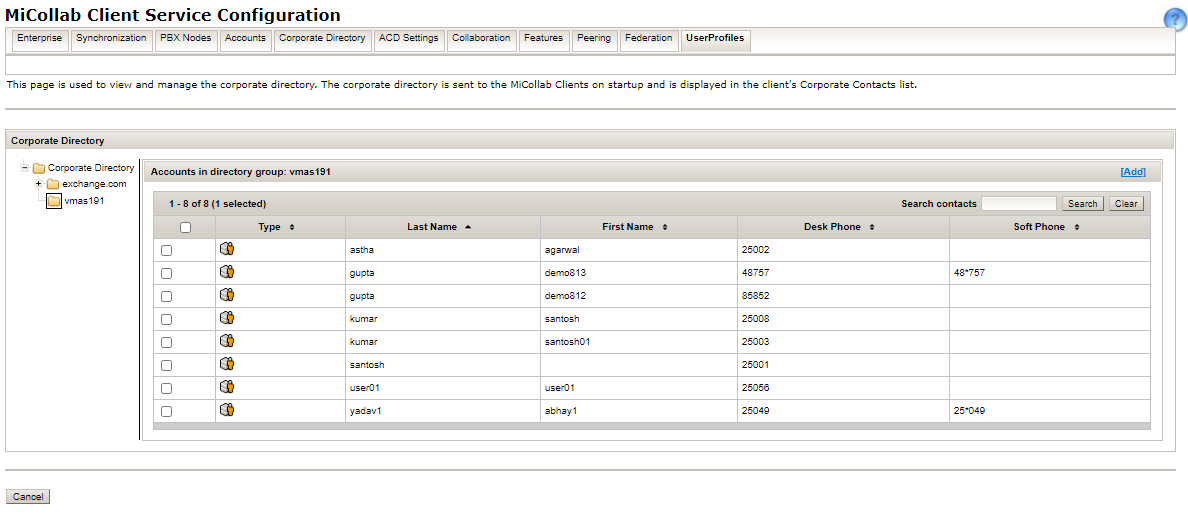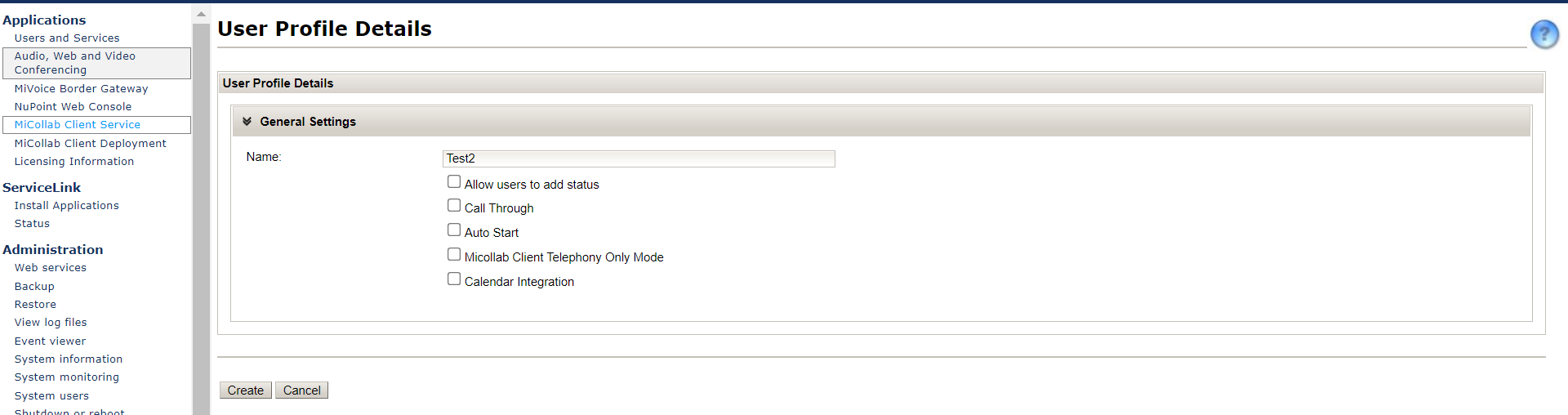 Navigate to Applications> MiCollab Client Service > User Profiles.