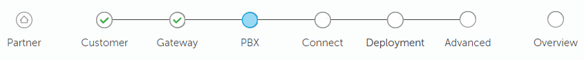 De PBX-stap van het proces klant onboarding vereist het invoeren van informatie over de PBX om een verbinding tot stand te brengen tussen deze en het CloudLink-platform.