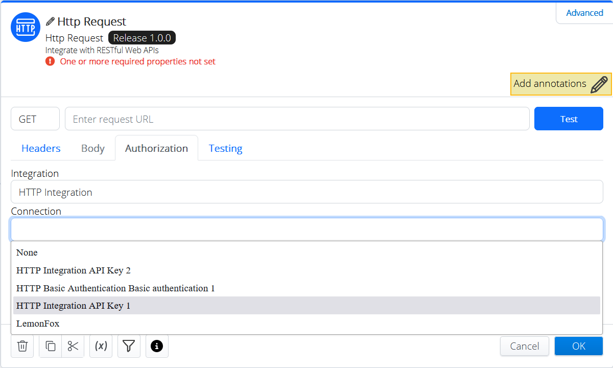 Once the HTTP connection is configured, you can use an HTTP Request activity within a flow.