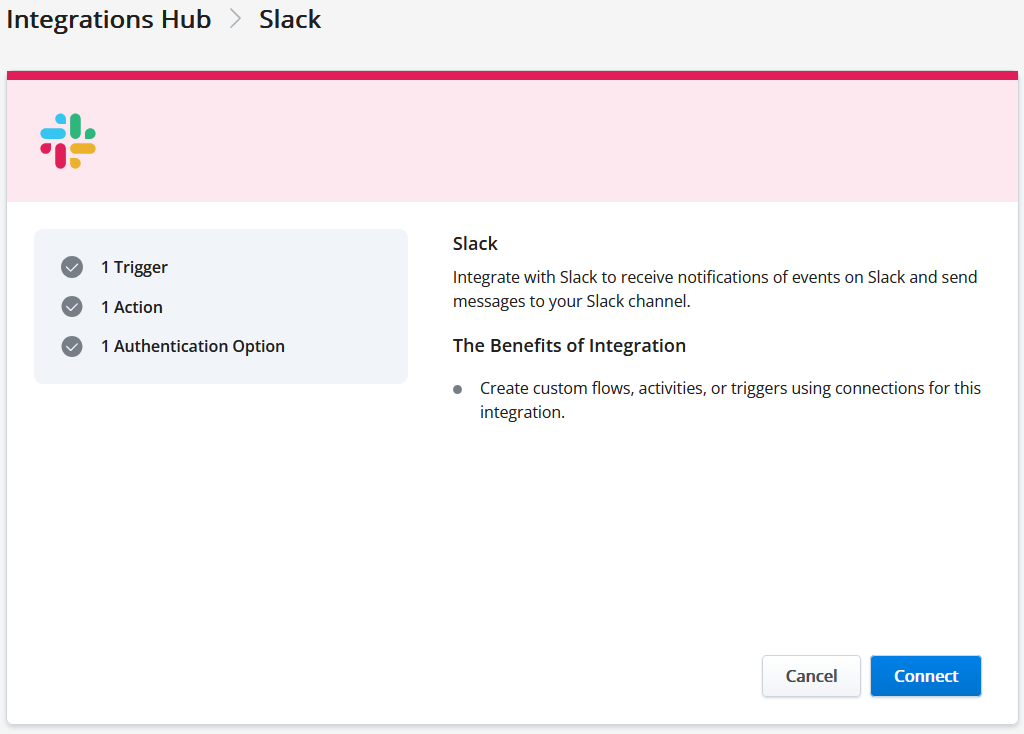 - On the Integrations Hub page, under the Connected Integrations section, click